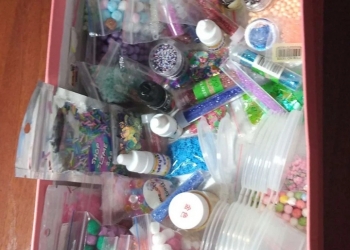 Различные добавки для слаймов, пенопл. Шарики, ароматизаторы (6 штук),фимы блёстки, баночки для слаймов и другие.